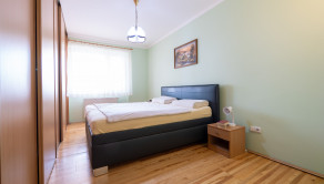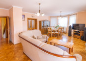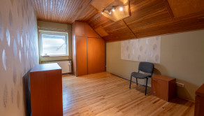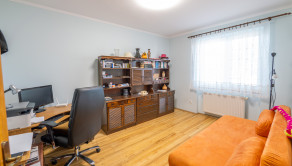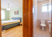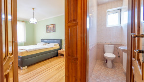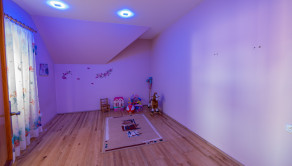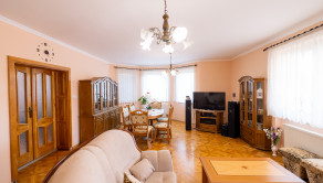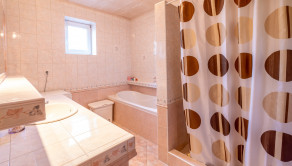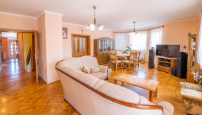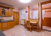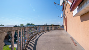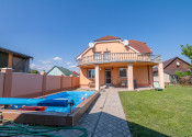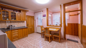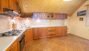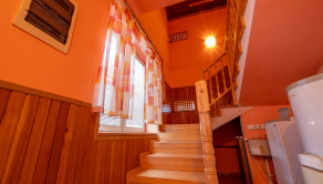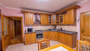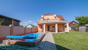 A ház bútorozottan eladó. Két szinten helyezkedik el. Az alsó szinten található: előszoba, tágas nappali, konyha, étkező, hálószoba, fürdőszoba WC-vel és technikai helyiség. Az emeleten: folyosó, három különálló szoba, fürdőszoba WC-vel, konyha étkező résszel és erkély. A telken található téglából épített medence és két garázs – az egyik elöl, a másik hátul. A hátsó garázs nyári konyhával rendelkezik, és teljesen alápincézett. A hátsó garázs mellett egy gyártócsarnok van, amely üzleti célokra is felhasználható (korábban asztalos műhelyként működött). A hátsó terasz ideális pihenésre, a nagy gyümölcsös pedig friss gyümölcsöket biztosít.