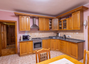 Dom sa predáva čiastočne zariadený. Pozostáva z dvoch podlaží. Na prízemí sa nachádza vstupná chodba, priestranná obývacia izba, kuchyňa, jedáleň, spálňa, kúpeľňa s WC a technická miestnosť. Na poschodí nájdete chodbu, tri samostatné izby, kúpeľňu s WC, kuchyňu s jedálenským kútom a balkón. Na pozemku sa nachádza murovaný bazén a dve garáže – jedna vpredu, druhá vzadu. Zadná garáž je vybavená letnou kuchynkou a je celá podpivničená. Vedľa zadnej garáže sa nachádza výrobná hala, čo ponúka možnosť využitia na podnikateľské účely (donedávna využívaná ako stolárska dielňa). Zadná terasa je ideálna na relax a veľký ovocný sad poskytuje množstvo čerstvého ovocia.