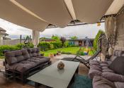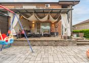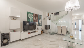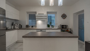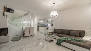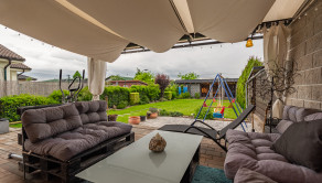 Nehnuteľnosť sa predáva so zariadením po dohode s majiteľom. Dom má dve podlažia – na prízemí sa nachádza priestranná obývačka prepojená s kuchyňou, kúpeľňa a praktická pracovňa. Na poschodí sú tri samostatné izby a druhá kúpeľňa, pričom z každej izby je priamy východ na balkón. Predná časť domu je orientovaná na východ, zatiaľ čo terasa a udržiavaná záhrada sú situované na západ, čo zabezpečuje príjemné svetelné podmienky počas celého dňa.