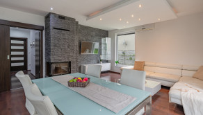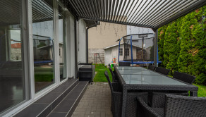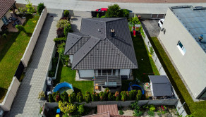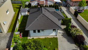 Dom bol skolaudovaný v roku 2013. Predstavuje moderný montovaný dom s oceľovým skeletom, ktorý zaisťuje vysokú stabilitu a kvalitu konštrukcie. Dom je pokrytý sedlovou strechou s kvalitnou Bramac krytinou, ktorá zaručuje dlhodobú odolnosť proti poveternostným vplyvom. Primárne vykurovanie je riešené plynovým podlahovým kúrením s rozvody do všetkých miestností, pričom ako alternatívne zdroje tepla slúžia tri klimatizačné jednotky alebo krb. Dom je osadený plastovými dvojkomorovými oknami, ktoré poskytujú vynikajúcu tepelnú a zvukovú izoláciu. Podlahy sú riešené kvalitnou laminátovou plávajúcou podlahou, ktorá zabezpečuje komfort a jednoduchú údržbu. Nehnuteľnosť je vybavená vlastnou studňou, automatickým zavlažovacím systémom záhrady, bezpečnostným alarmom a tromi klimatizačnými jednotkami pre optimálnu klímu počas celého roka. K domu prináleží elegantná bioklimatická pergola, nadzemný bazén pre relaxáciu a podpivničený záhradný domček poskytujúci dodatočný úložný priestor a možnosti využitia.