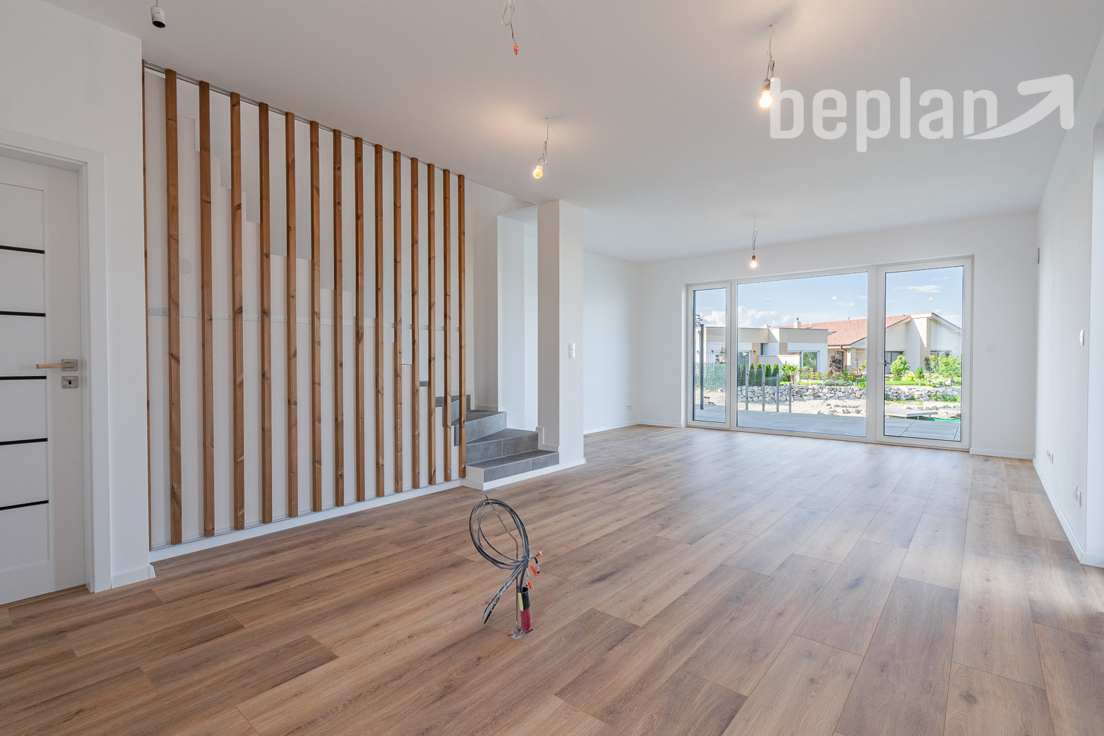 Dom je postavený z tehly a je zateplený. Predáva sa skolaudovaný v stave holodom. Teplo zabezpečuje elektrické podlahové kúrenie (v každej izbe termostaty na regulovanie teploty). Dom disponuje vŕtanou studňou a predprípravou na elektrické žalúzie, klimatizáciu (2 jednotky), lokálnu rekuperáciu – do každej izby, kamerový systém, mestskú vodu, kanalizáciu a závlahu. V exteréri sa nachádza dostatok zelene.