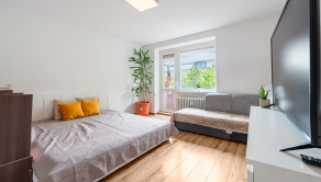 Byt je výbornou voľbou pre bývanie aj ako investícia. Dispozične veľmi dobre riešený – dve nepriechodné izby, samostatná kuchyňa, WC a kúpeľňa, balkón a pivnica. Veľkým plusom sú zachované dubové parkety pod podlahou, repasované liatinové radiátory a bezpečnostné dvere Sherlock.