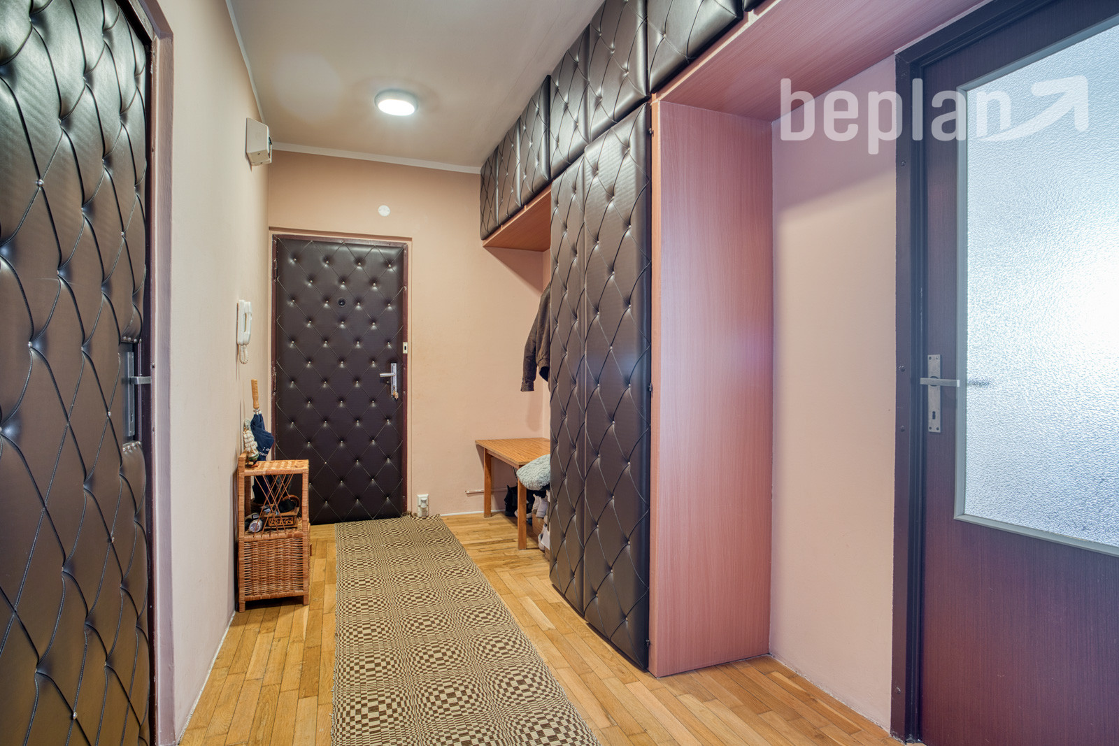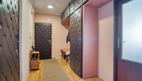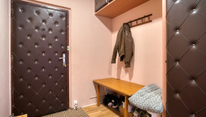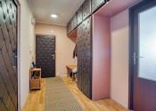 Do bytu sa vchádza cez priestrannú vstupnú halu, z ktorej je prístup do troch samostatných izieb, kuchyne, kúpeľne a samostatnej toalety.