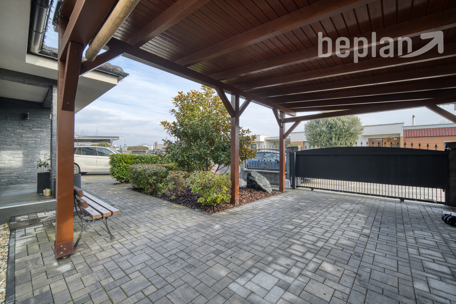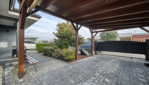 Nehnuteľnosť disponuje modernými technológiami navrhnutými pre maximálny komfort bývania, pričom teplovodné podlahové kúrenie napojené na plynový kotol so zónovou reguláciou aj klimatizačné jednotky v každej izbe je možné ovládať na diaľku prostredníctvom mobilnej aplikácie. Exteriér je vybavený elektrickými hliníkovými žalúziami na diaľkové ovládanie a predinštalovaným dekoratívnym osvetlením domu, altánku aj prístrešku v kombinácii teplej a studenej bielej farby. Samozrejmosťou je optický internet, vlastná studňa s automatickou závlahou a zároveň už podaná žiadosť o pripojenie na verejnú kanalizáciu, ktorej realizácia je plánovaná v najbližších týždňoch.
