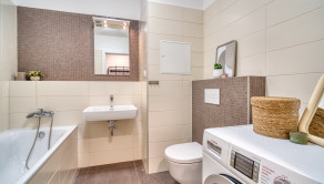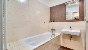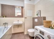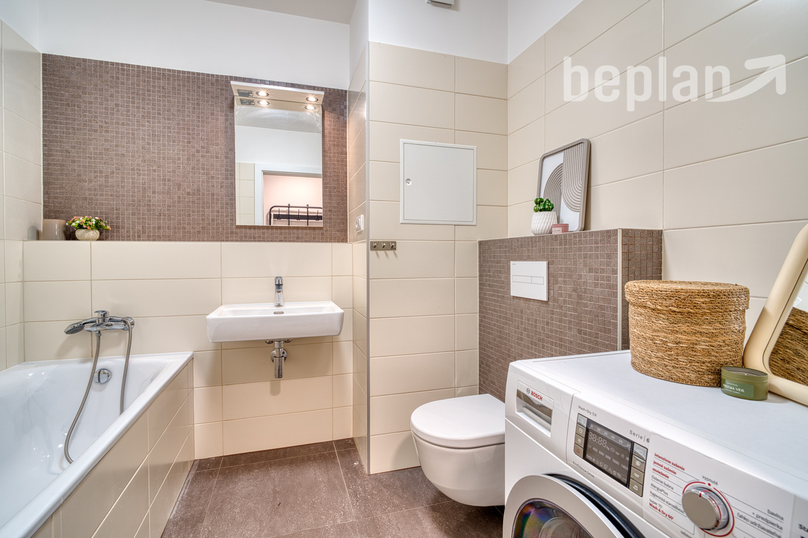 • Kúpeľňa: Moderné prevedenie s vaňou, toaletou a automatickou práčkou.