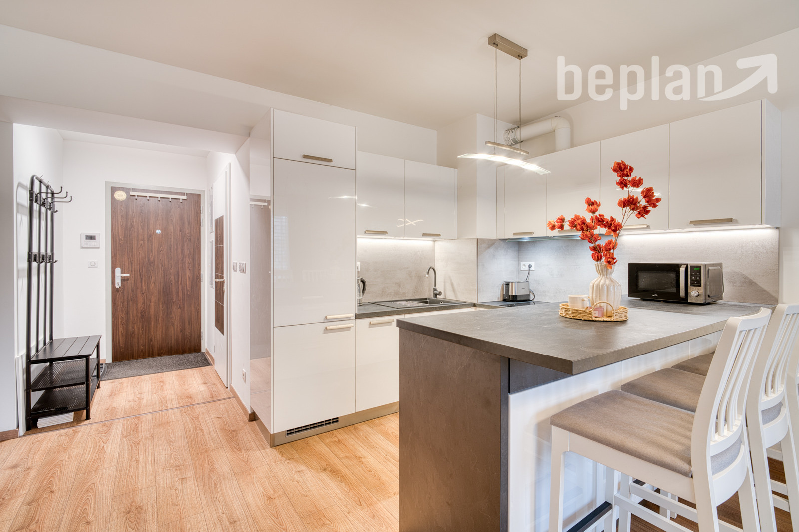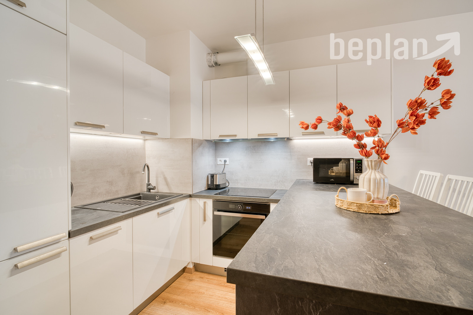 Beplan Reality vám exkluzívne ponúka na prenájom moderný, kompletne zariadený 2-izbový byt, ktorý definuje štandard súčasného mestského komfortu. Byt sa nachádza na Bernolákovej ulici v oceňovanom projekte Stein v Bratislave. Ponúkaná nehnuteľnosť na 3. poschodí v sebe spája nadčasovú architektúru, kvalitné materiály a výbornú dostupnosť do centra mesta. K bytu prislúcha priestranná loggia a pivnica.
