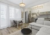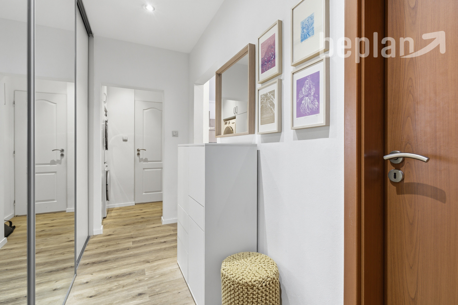 Byt pozostáva zo vstupnej chodby, v ktorej sa nachádza veľká rolldor skriňa poskytujúca dostatok úložného priestoru. Zo vstupnej chodby je prístup do samostatnej spálne a do obývacej izby spojenej s kuchyňou, pričom z obývacej izby je aj výstup na balkón. Súčasťou bytu je tiež kúpeľňa so sprchovým kútom, umývadlom a toaletou.