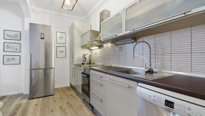 Nehnuteľnosť sa predáva kompletne zariadená vrátane kvalitných spotrebičov. Súčasťou zariadenia je plne vybavená kuchyňa s varnou doskou a chladničkou, práčka a samostatná sušička, klimatizačná jednotka v obývacej izbe a kúpeľňa so sprchovým kútom, umývadlom a toaletou.