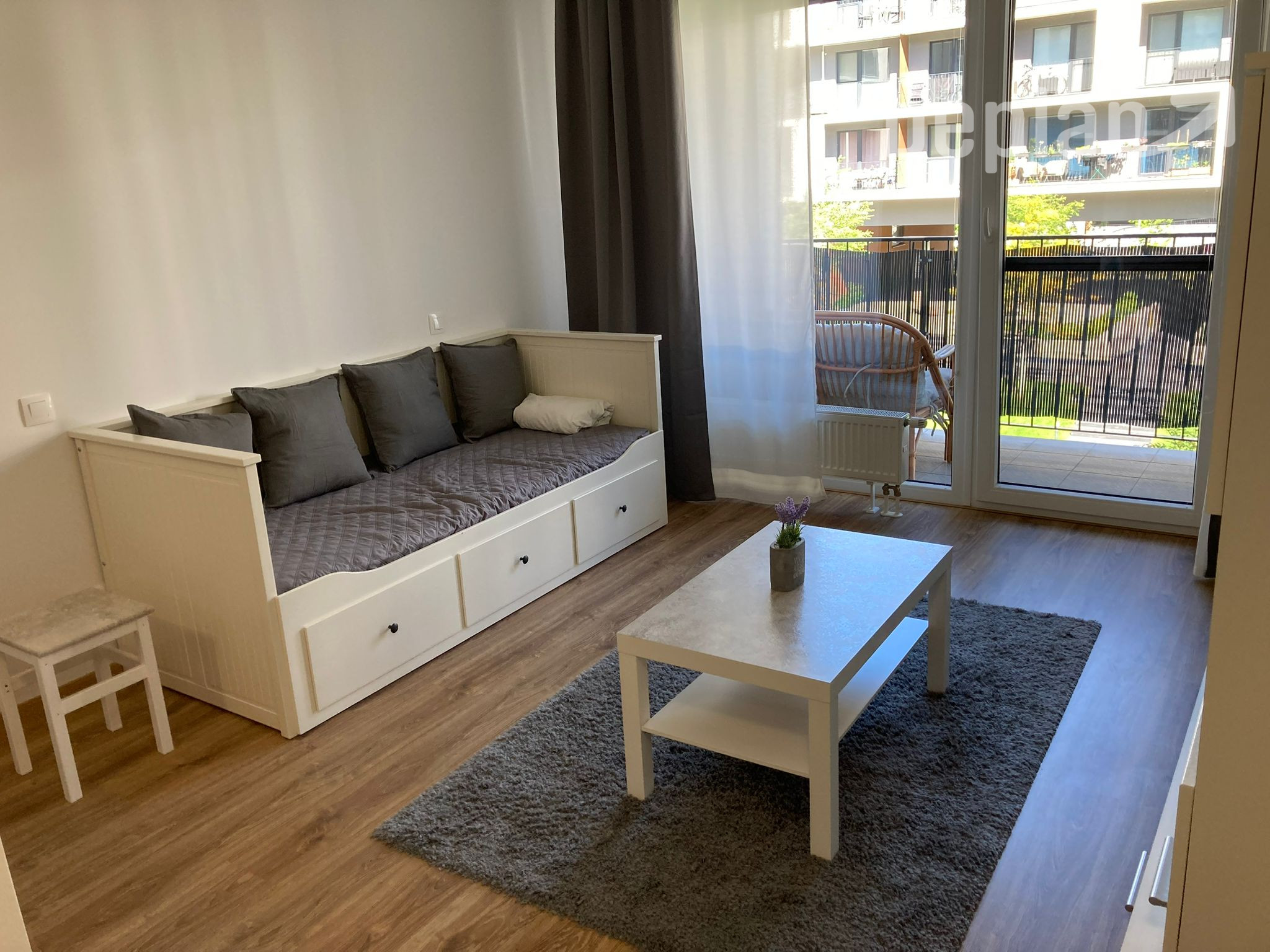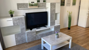 Byt sa prenajíma kompletne zariadený. Súčasťou vybavenia je plne vybavená kuchyňa, obývacia časť s kvalitnou rozkladacou posteľou vhodnou na každodenné spanie, kúpeľňa s WC a balkón poskytujúci priestor na relax.