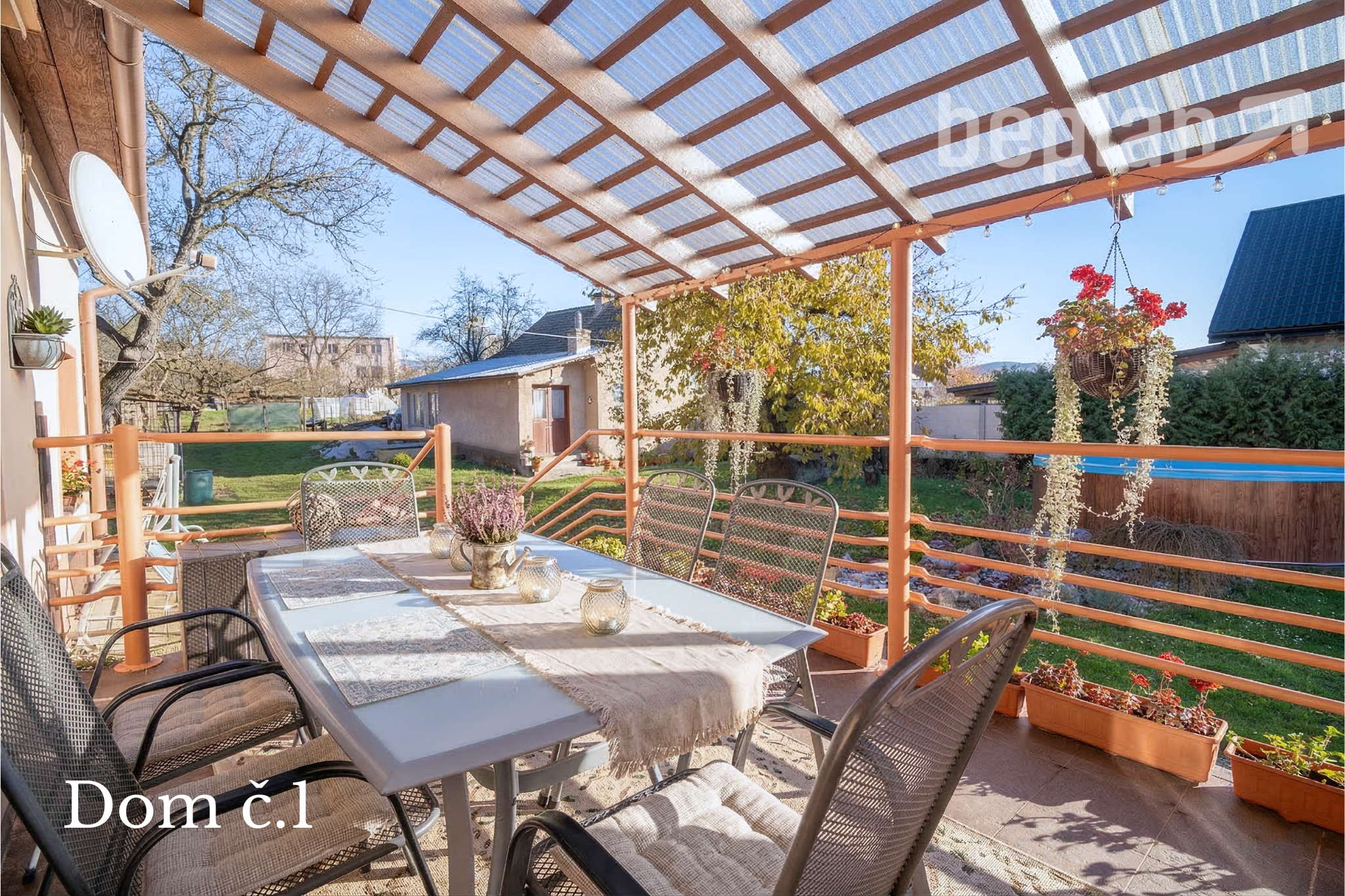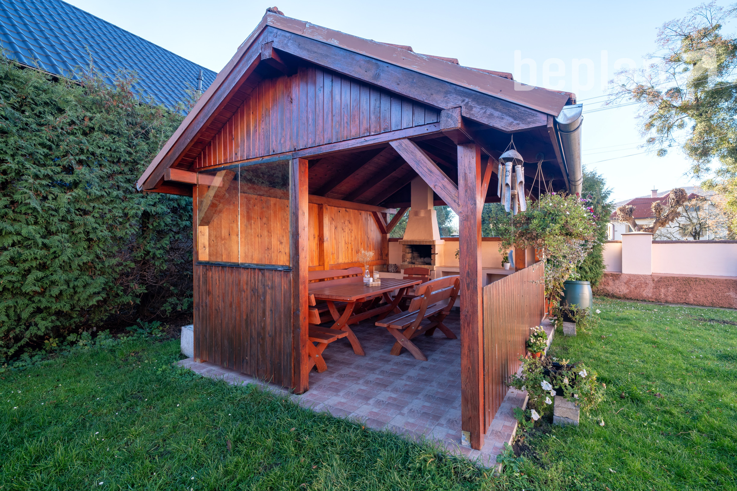 Na pozemku sa nachádza bazén, garáž, altánok zapísaný na LV, technické a skladové miestnosti. Zadná časť je ideálna na pestovanie zeleniny a nachádza sa tam ďalší skladový priestor.