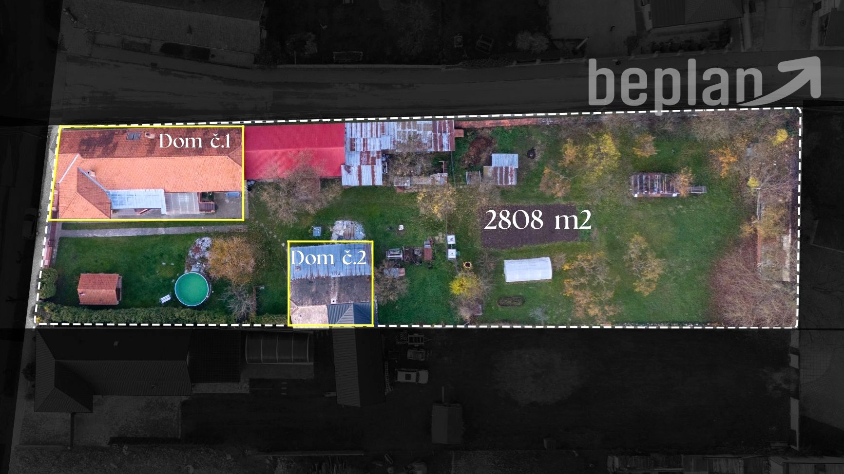 Celková rozloha pozemku: 2 808 m2 (rovinatý, s možnosťou rozdelenia a vlastného vstupu)