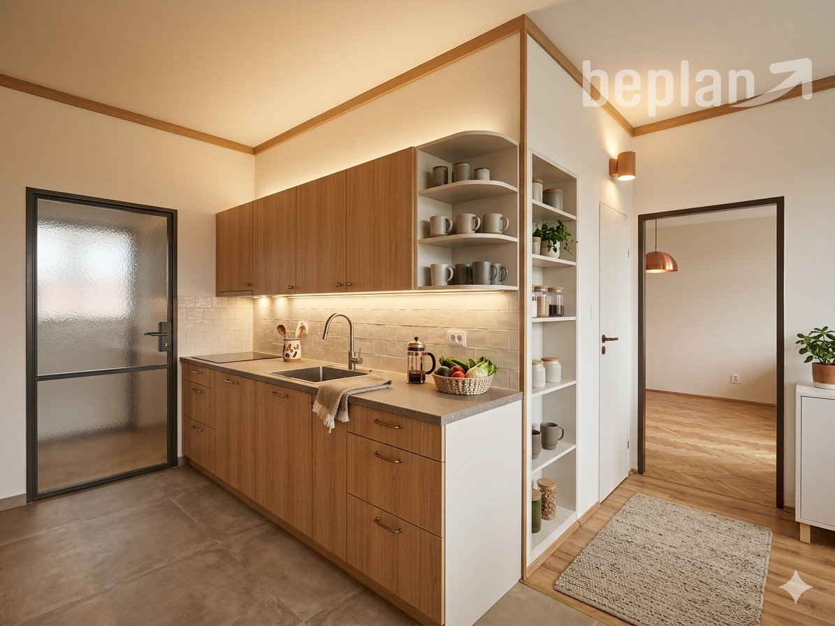 Dispozícia bytu pozostáva zo vstupnej chodby, obývacej izby, dvoch samostatných spální, kuchyne, samostatného WC, kúpeľne a šatníka. K bytu ešte prislúcha špajza na chodbe pred bytom a pivnica v suteréne bytového domu.