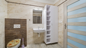 Nehnuteľnosť ponúka praktické a pohodlné riešenie bývania. Nachádzajú sa v ňom tri spálne, technická miestnosť s čističkou vody, kúpeľňa spojená s WC ako aj samostatné WC. Dominantou domu je priestranná obývacia izba prepojená s kuchyňou, z ktorej je priamy vstup na krásnu terasu.