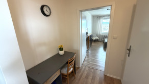 Vstupná chodba, kuchyňa s výstupom na zasklený balkón, obývacia izba, šatník, kúpeľňa s WC.