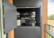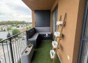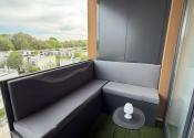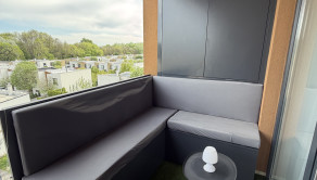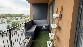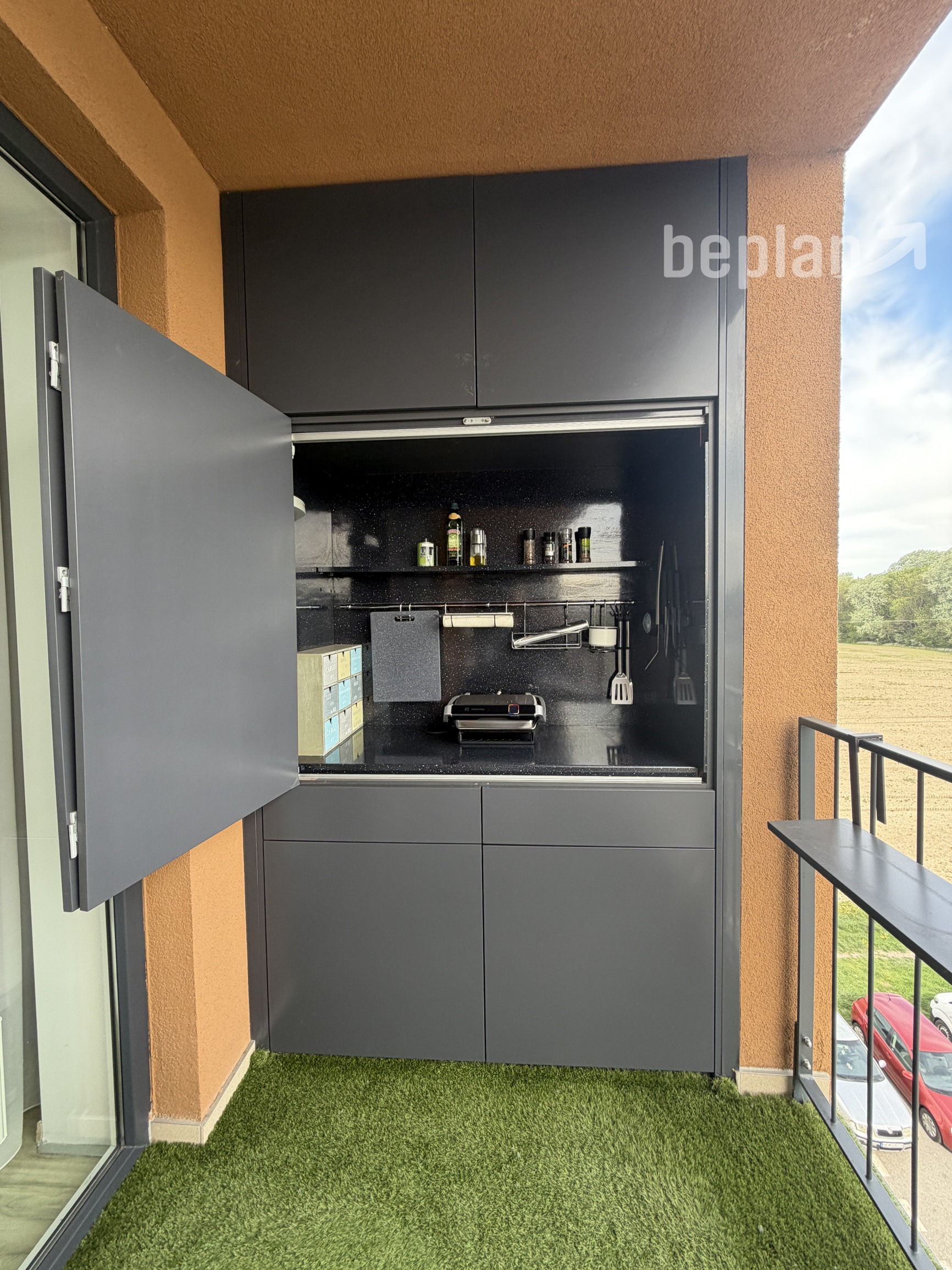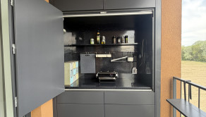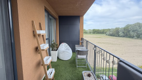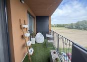 Súčasťou bytu je aj terasa s vonkajším sedením a príjemným výhľadom do pokojného prostredia. Nachádzajú sa tu dve vstavané skrine – jedna určená na potreby grilovania a druhá poskytuje ďalší praktický úložný priestor.