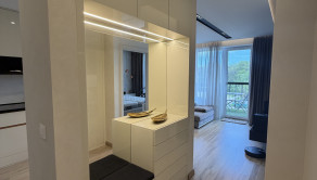 Byt sa nachádza v novostavbe a je vo výbornom stave. Je moderne a premyslene zariadený nábytkom vyrobeným na mieru, s dôrazom na kvalitu, funkčnosť a maximálne využitie priestoru.