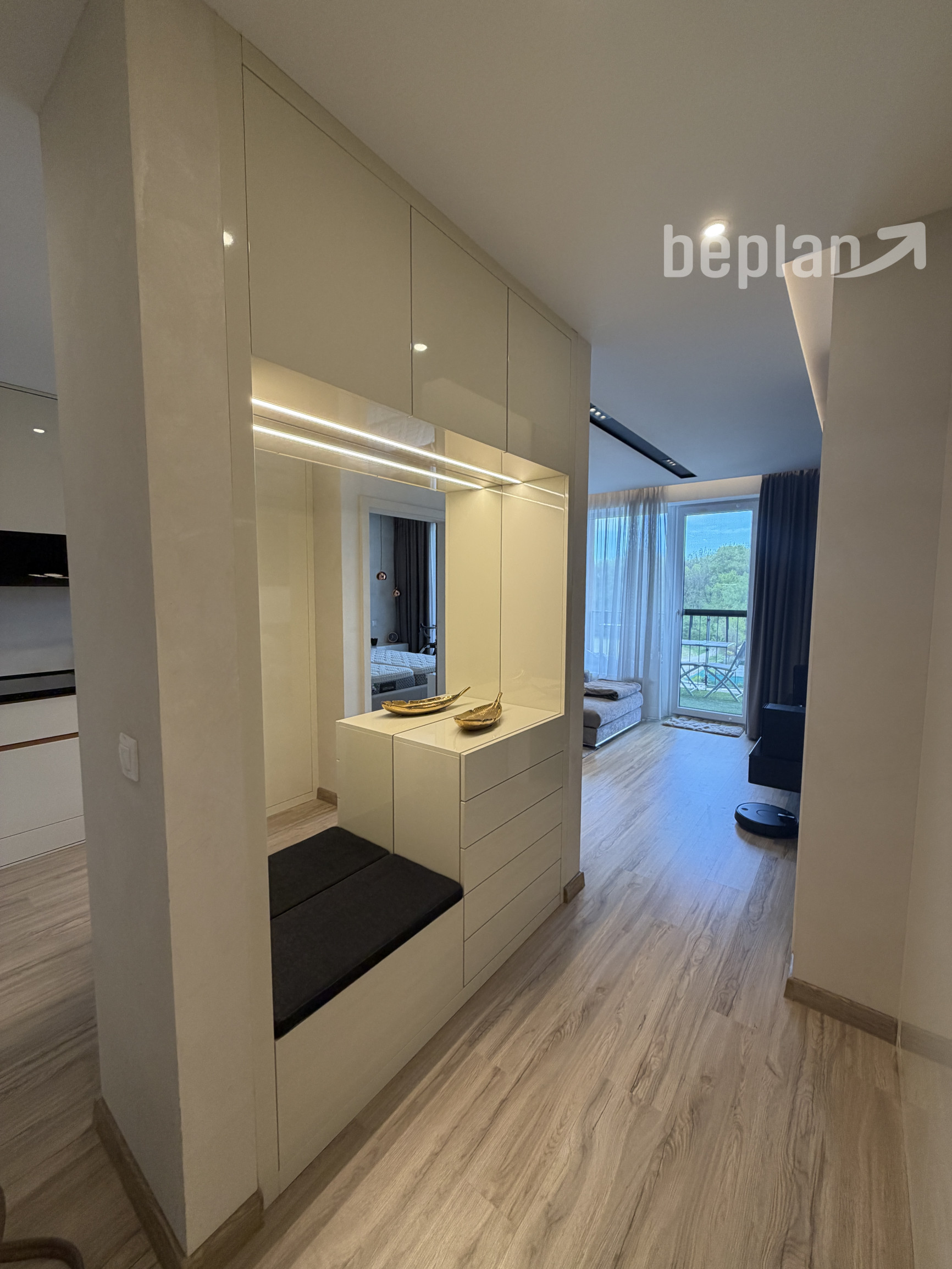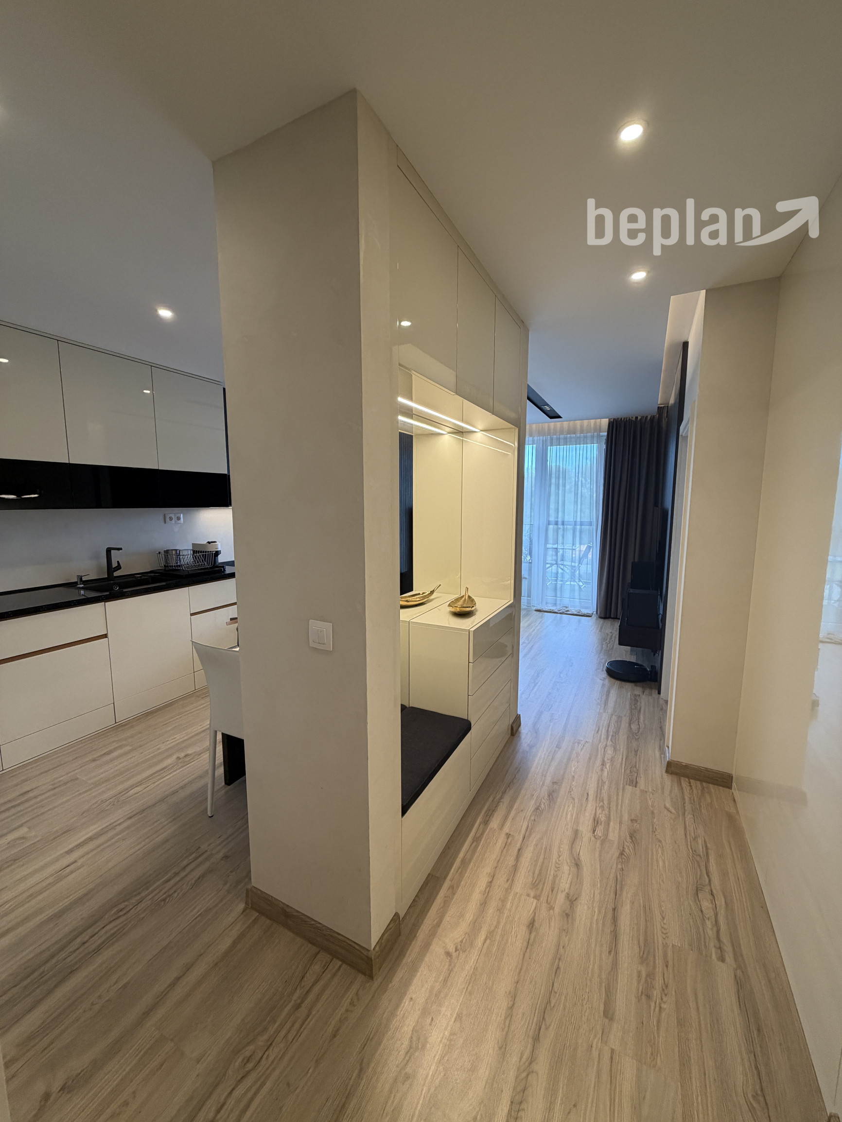 Beplan reality ponúka na prenájom moderný 2-izbový byt v obľúbenej lokalite Slnečnice, ktorý vyniká premysleným riešením a množstvom úložného priestoru. Byt je kompletne zariadený, pričom nábytok a vstavané skrine boli vyrobené na mieru, čo zaručuje maximálne využitie priestoru a komfort bývania. Obývacia izba ponúka nadštandardné vybavenie pre milovníkov technológií a kvalitného zvuku – DALI Sensor 1AX so subwooferom, LG OLED 65” televízor, Bluesound HiFi prehrávač a NVIDIA Shield s KODI, čo vytvára ideálne prostredie na oddych a zábavu. Veľkým benefitom je balkón s dvomi vstavanými skriňami – jedna poskytuje praktický priestor napríklad na grilovanie, druhá slúži ako ďalší odkladací priestor. Byt sa nachádza na 3/5 poschodí v bytovom dome s príjemnou atmosférou. K dispozícii sú až dve parkovacie miesta – jedno v podzemnej garáži a druhé vonkajšie.