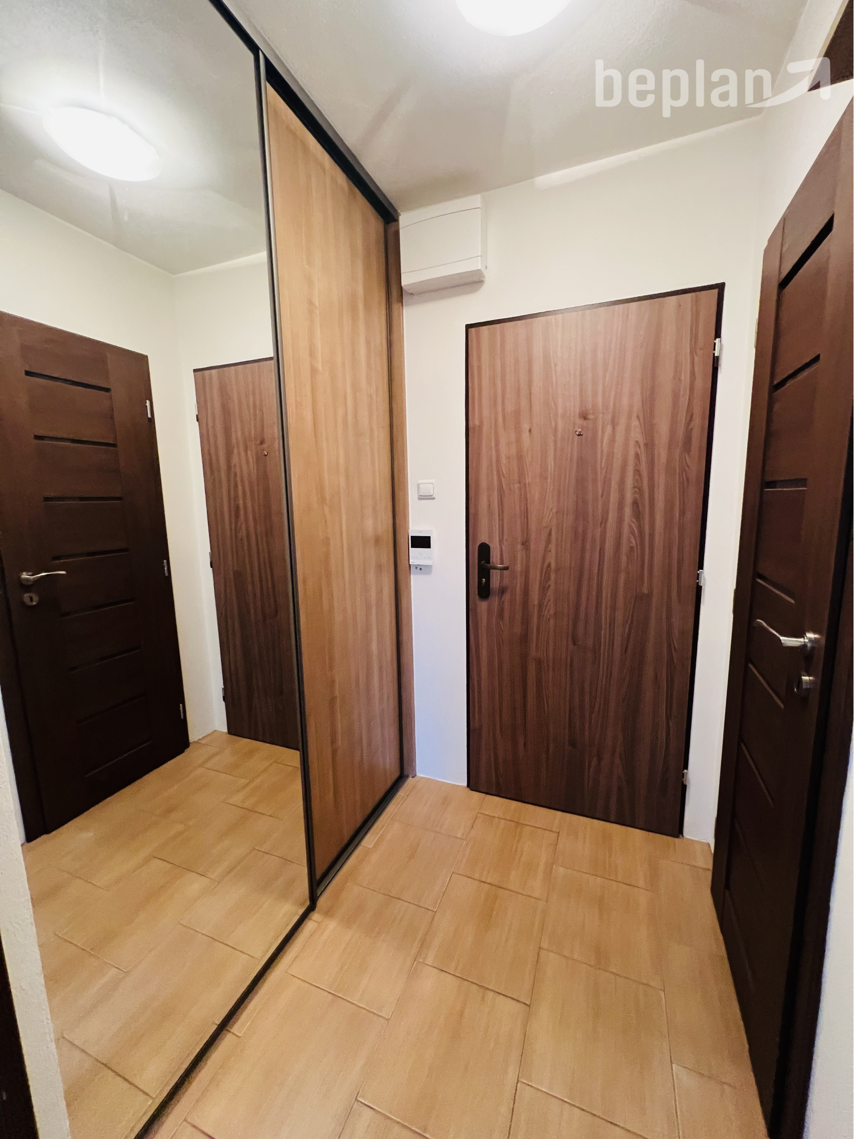 Byt prešiel kompletnou rekonštrukciou a prenajíma sa kompletne zariadený. Súčasťou vybavenia je pohovka, konferenčný stolík, počítačový stolík, posteľ, skrine, mikrovlnka, rúra, varná doska, chladnička a práčka. Dispozícia bytu zahŕňa vstupnú chodbu, kúpeľňu s WC, obývaciu izbu so spálňovou časťou, samostatnú kuchyňu a látkovú pivnicu v suteréne bytového domu. Orientácia bytu na južnú stranu zabezpečuje dostatok prirodzeného svetla počas celého dňa.